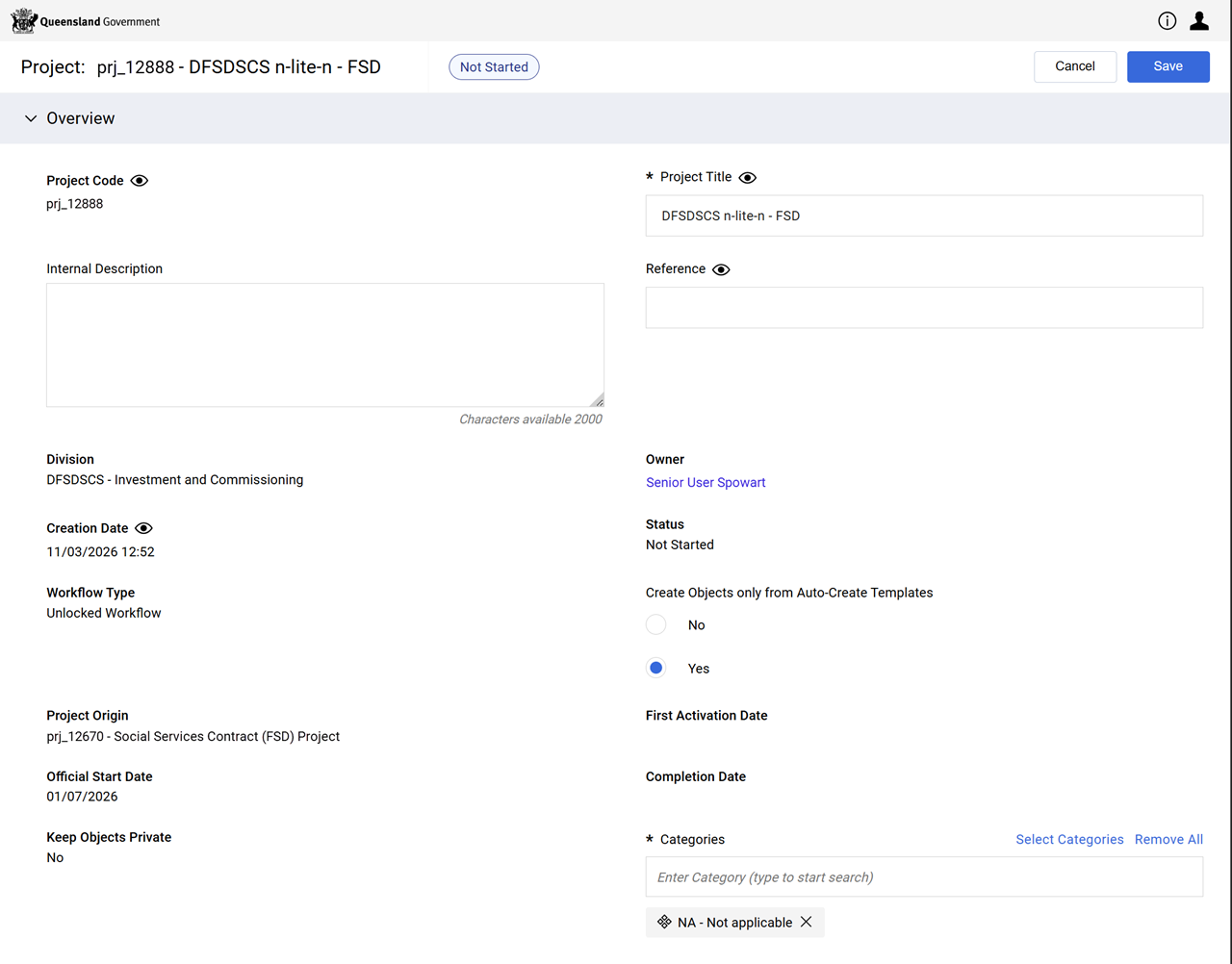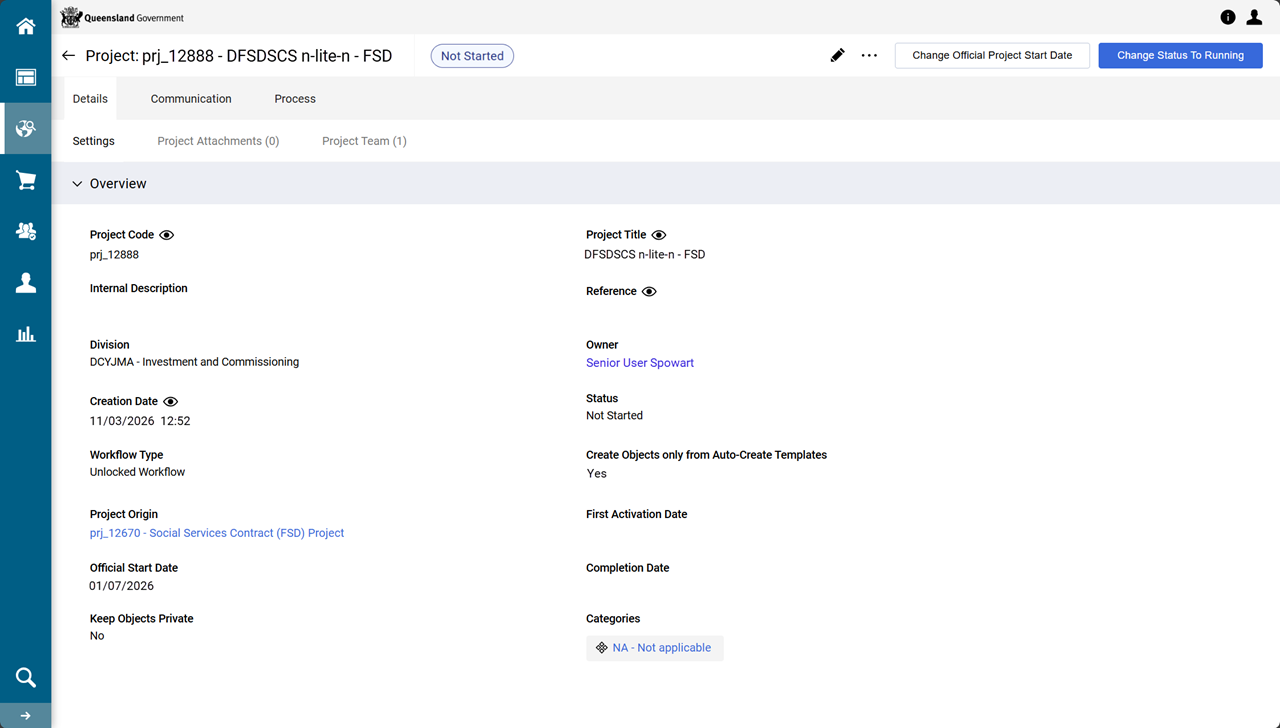 Select the Social Services Contract (FSD) Project template from the list and click Select.